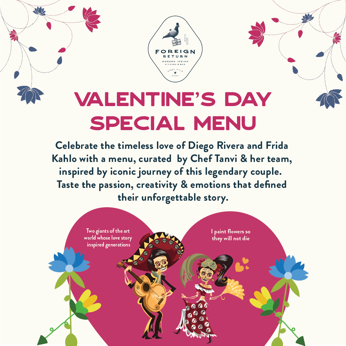 Celebrate the timeless love of Diego Rivera and Frida Kahlo with a menu, curated by Chef Tanvi & her team, inspired by iconic journey of this legendary couple. Taste the passion, creativity & emotions that defined their unforgettable story.