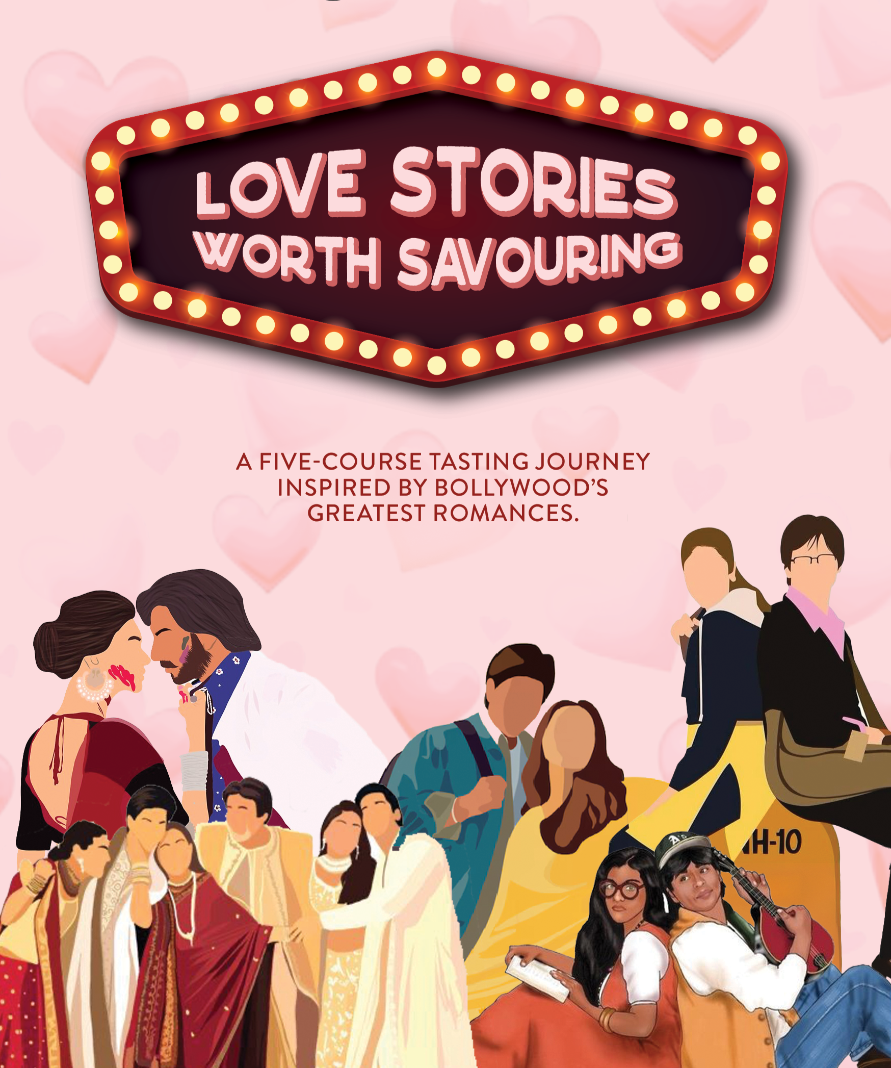 A specially curated five-course tasting journey inspired by Bollywood’s most iconic romances. Each course follows the emotional arc of a timeless love story — from first glances and playful flirtation to longing, passion, and joyful reunion.